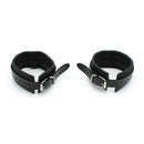 Dank der Schnallen lässt sich der Umfang der Fesseln mühelos verstellen und ermöglicht so eine perfekte Passform von 24 cm bis 38 cm. Die Fußfesseln sind 5 cm breit, eine stattliche Breite also, die das Gefühl der Unterwerfung definitiv verstärkt.