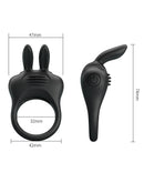 Während der Cockring für eine länger anhaltende und größere Erektion sorgt, stimulieren die beiden Kaninchenohren die Klitoris. Der Bullet-Vibrator befindet sich unterhalb des Kaninchen-Klitor-Stimulators. Dieser Cockring-Vibrator wird mit 3x LR41-Batterien betrieben (im Lieferumfang enthalten).