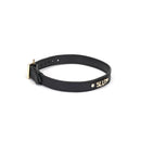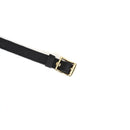 - Luxe look due to the black cowhide leather that features an ostrich leather look and gold details.