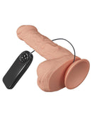 Meet Pretty Love Bergrisi a 26 cm Realistic Vibrating Dildo, light skin color and with remote control, an impressive sex toy with realistic details and functionality that work together to create a pleasurable experience. With its lifelike features, including a bulbous glans, veins on the shaft and smooth testicles, Bergrisi promises unique and satisfying stimulation.