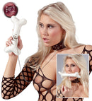 El hueso mide aproximadamente 20 cm de largo y está fabricado en símil piel y con los bordes cosidos.