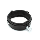 Gracias a la hebilla de la parte trasera, la circunferencia del collar puede ajustarse sin esfuerzo, permitiendo un ajuste perfecto de 38 cm a 51 cm. El collar mide 5 cm de ancho, una anchura considerable que sin duda aumentará la sensación de sumisión.