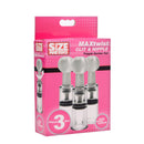 Disfruta de una potente succión con este juego triple de cilindros de succión. Simplemente puede aplicarlos en cualquier zona que se beneficiaría de una mayor sensibilidad y flujo sanguíneo, y no necesita una bomba ni otros accesorios. Estos dispositivos de succión autónomos funcionan con un simple giro. Silenciosos, sencillos y discretos, estos succionadores se pueden llevar fácilmente en un estuche (de juego) y utilizar para la estimulación sobre la marcha. Se mueven con facilidad y suavidad y tienen un sello fuerte que asegura una succión sublimemente potente.