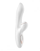 Pendant ce temps, le stimulateur clitoridien caresse ta perle d'amour avec une stimulation sensuelle par ondes de pression. L'accessoire rond en silicone entoure ton clitoris tout en t'amenant à une jouissance sans contact. Cela te procure une sensation similaire à la stimulation orale : la commutation rapide entre l'aspiration et la pression est disponible en 11 intensités - il suffit d'utiliser les commandes intuitives pour passer d'un réglage à l'autre. Un troisième bouton contrôle le mode de vibration, ce qui permet d'innombrables et séduisantes combinaisons de réglages. Le Satisfyer Pro G-Spot est également extrêmement silencieux, bien qu'il puisse t'arracher quelques bruits ! Sa finition étanche en fait également le compagnon de bain idéal, t'invitant à profiter des plaisirs sensuels sous la douche ou dans le bain.