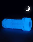 Maak de donkerste fantasieën mogelijk met deze glow in the dark masturbator! De masturbator is doordrenkt met niet-giftig gloeipoeder, dat in het donker een kleurrijk, zichtbaar blauw licht afgeeft. Het rekbare materiaal glijdt gemakkelijk op en neer langs de schacht en masseert de penis met innerlijke texturen.