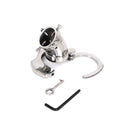 Deze kuisheidskooi is gemaakt van roestvrij staal, en bevat geen chroom of nikkel maar is met de hand gepolijst. Dit is het echte bdsm-werk voor gevorderde slaven. Door de penis in de kooi te plaatsen heeft een diameter van 35 mm. De handboei die eraan vastzit is verstelbaar van 50 mm tot 70 mm. De schroeven met vrij stompe punten kunnen worden vastgeschroefd wanneer de penis als geheel uitsteekt. Durf dus liever geen stijve te krijgen!